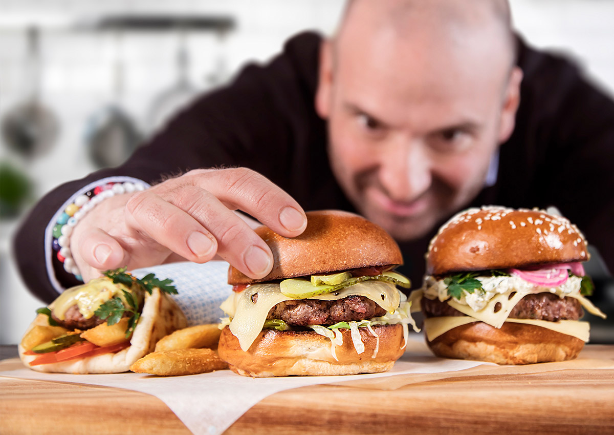 George Calombaris stands by Jarlsberg when he makes his burgers. This competition challenged people to better his top 3 go-to burger hits; 'The Classic', 'The Greek' and 'The Souva'.